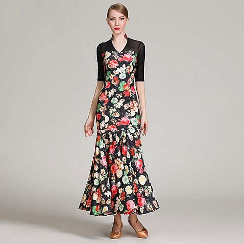 Balli latino-americani Abbigliamento da ballo per bambini Abito Colore Puro A fantasia Da ragazza Prestazioni Addestramento Mezza manica Alto Poliestere