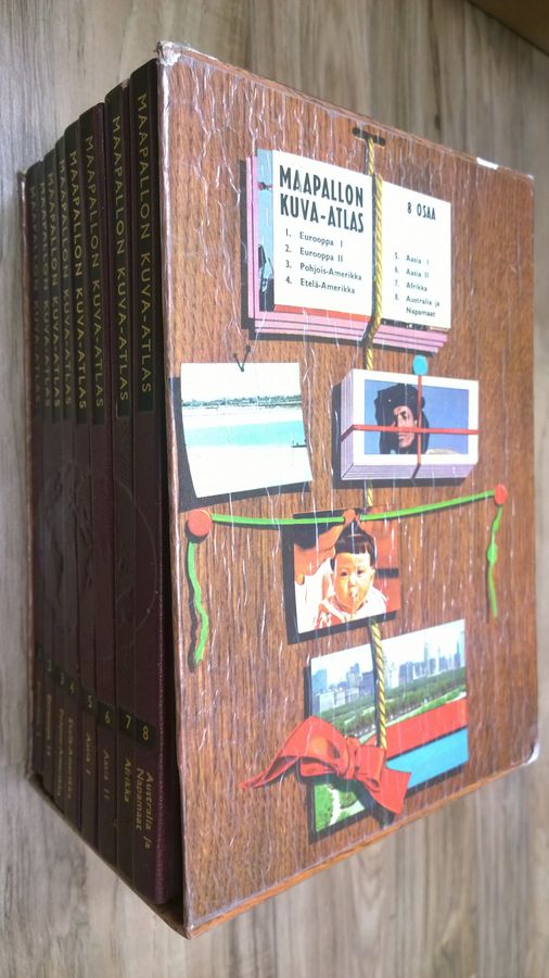 Maapallon kuva-atlas 1-8 : Eurooppa 1-2 ; Pohjois-Amerikka ; Etelä-Amerikka ; Aasia 1-2 ; Afrikka ; Australia ja napamaat