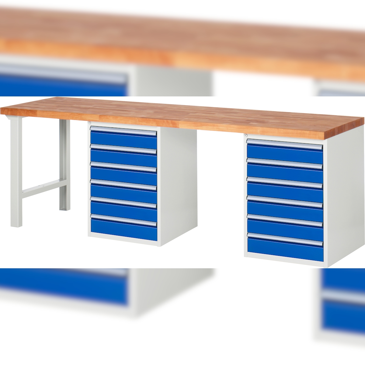eurokraft pro Werkbank, Baukastensystem Serie 7000, 4 Hängeschubladen, BxT 2500 x 700 mm
