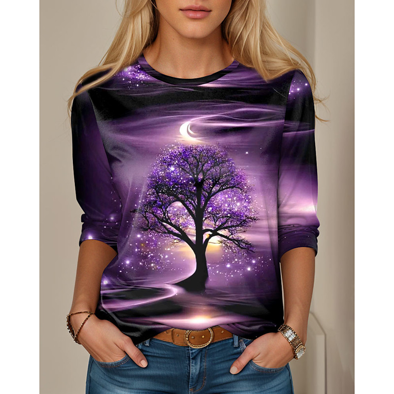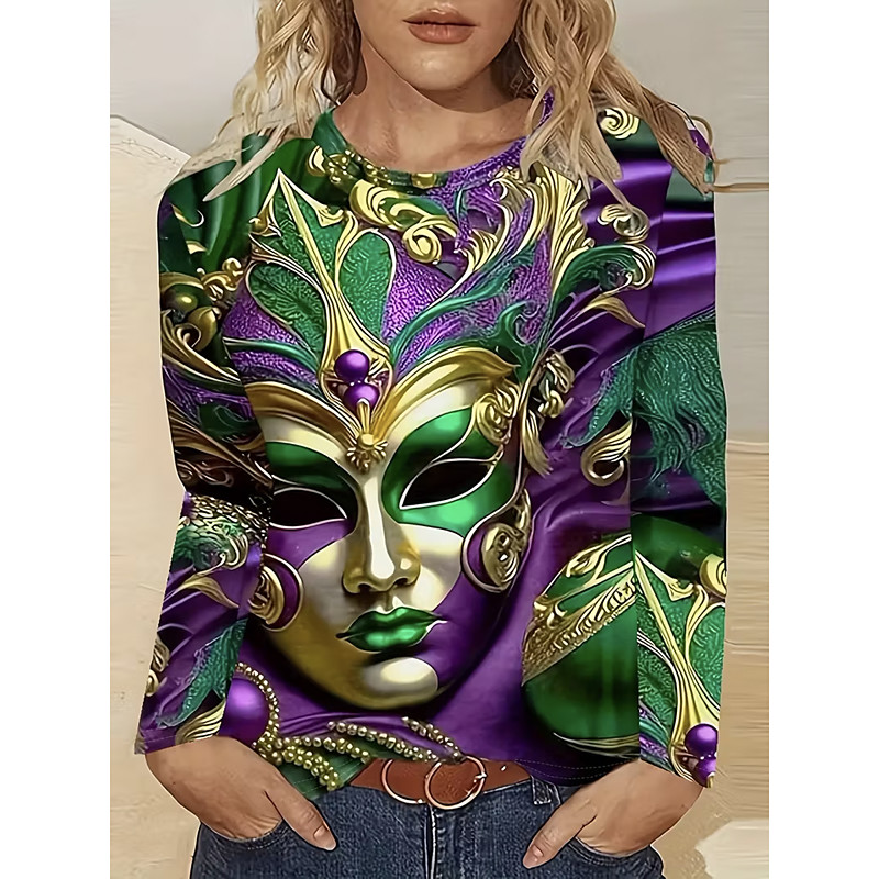 Carnival Women's T Shirt Graphic Vintage Fashion Stylish Long Sleeve Crew Neck Regular Tops Daily Print Purple Spring Fall