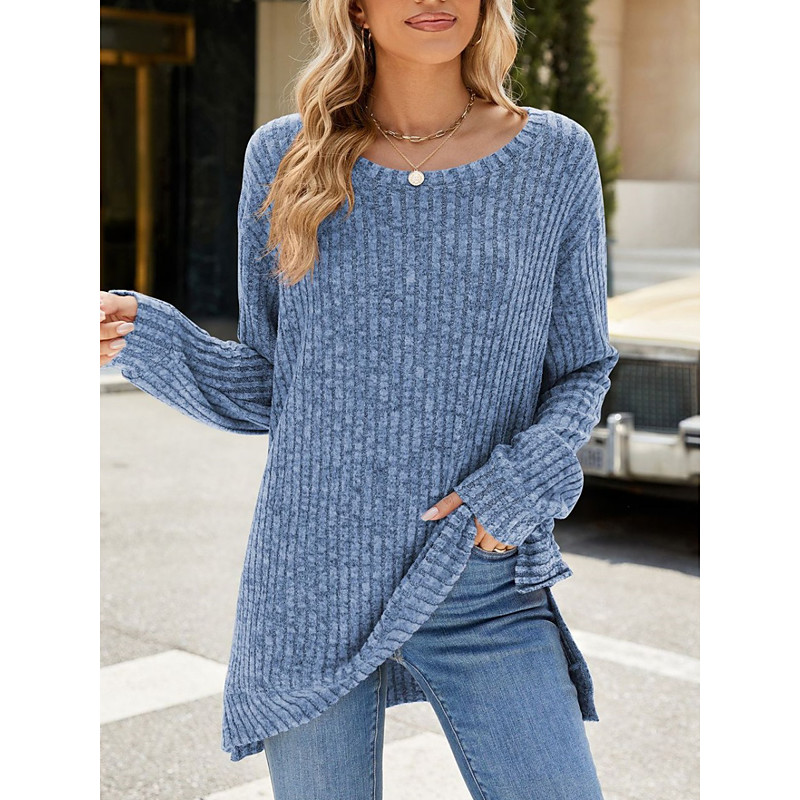 Women's Sweater Pullover Casual Solid Color Ribbed Crew Neck Knitted Long Sleeve Regular Tops Knit Going out Weekend Black White Fall