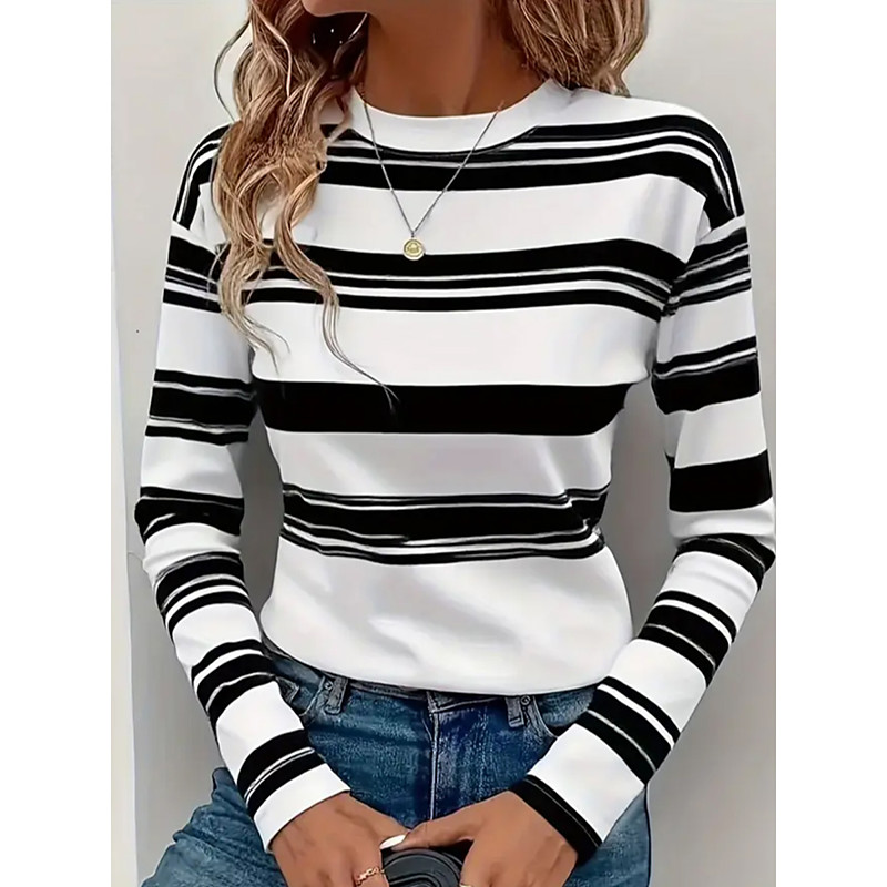 Women's T Shirt Graphic Striped Vintage Fashion Stylish Long Sleeve Crew Neck Regular Tops Daily Weekend Print Blue White Khaki Fall Winter