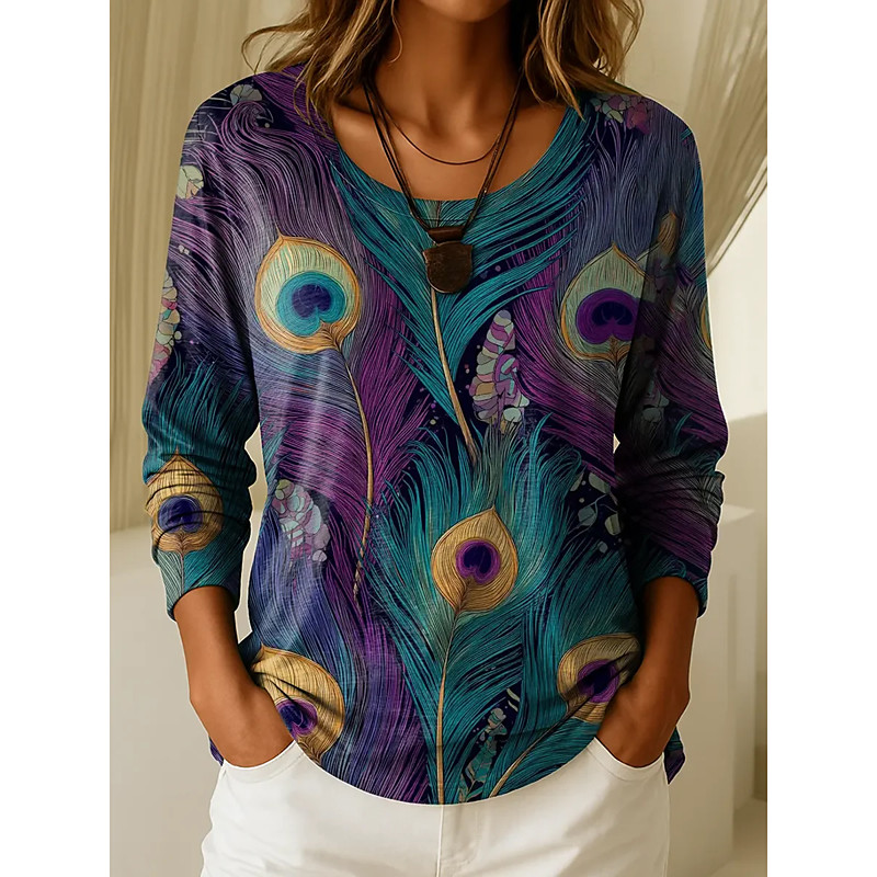 Women's T Shirt Floral Graphic Plants Fashion Casual Long Sleeve Crew Neck Regular Tops Daily Weekend Print Blue Pink Purple Fall Winter