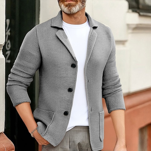 Per uomo Cardigan Maglione Corto Maglione a maglia Giacca cardigan A Coste Lavorato a maglia corto Maglia Top Regolari Tasca Colore Solido / Tinta Unita Colletto a Camicia Moda Classico Vacanza