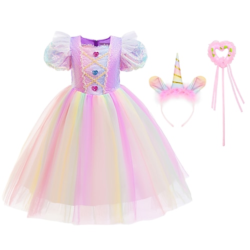 Bambini Ragazze Abito Tinta unica Manica Corta Matrimonio Feste Moda Carino Poliestere Abito con Paillettes Estate Primavera 4-12 Anni SB23A59PS08 SB23PS08A59ST210 SB23PS08A59ST284