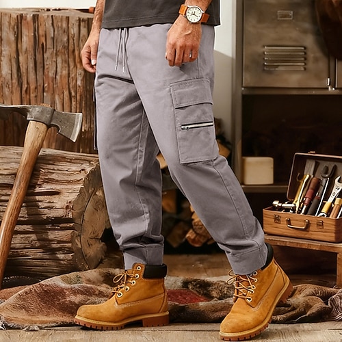 Per uomo Pantaloni Cargo Pantaloni Coulisse Elastico in vita Multi-tasche Tinta unica Antivento Comodità Quotidiano All'aperto Ferie Streetwear Elegante Nero Rosso