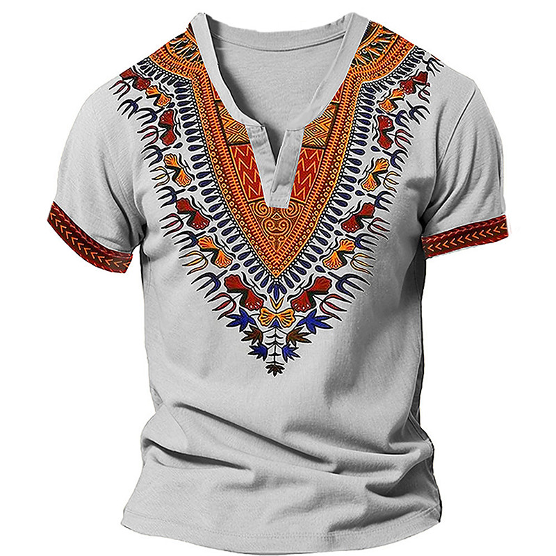 African Pattern V Neck Men's Ethnic Style 3D Print T shirt Tee Henley Shirt Casual Daily T shirt Khaki Gray Short Sleeve Henley Shirt Summer Clothing Apparel S M L XL 2XL 3XL