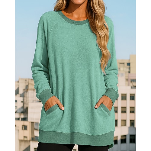 Per donna Felpa pullover Top casual con tasche Manica Lunga Top Athleisure Autunno Tinta unita Di tendenza All'aperto Viaggio abbigliamento sportivo Abbigliamento sportivo Rosa Blu Verde