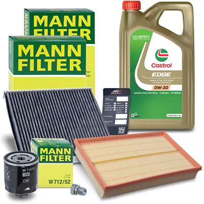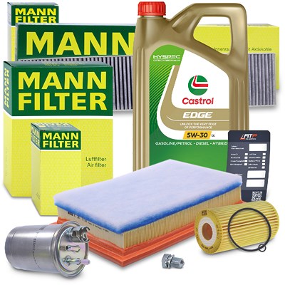 Mann-filter Inspektionspaket A + 5L CASTROL EDGE FST 0W-30 [Hersteller-Nr. 10492466] für VW, Seat, Skoda