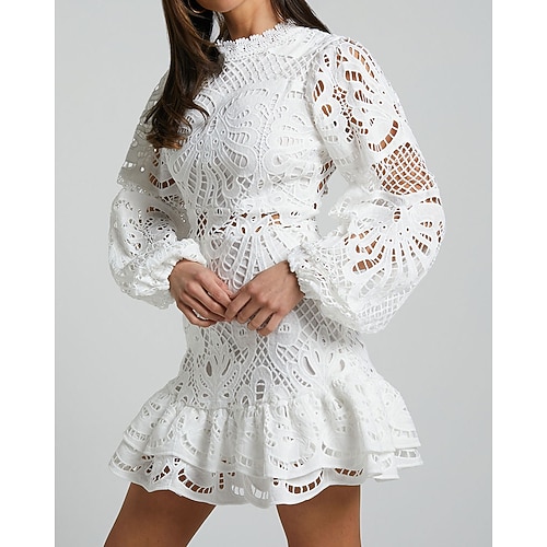 Per donna Mini Abito Abito nero Abito in Pizzo Abito ritagliato Tubino Moda Moderno Manica a rete Manica a Lanterna Ufficio Uscire Vestibilità regolare Floreale Manica Lunga Collo alla coreana Blu