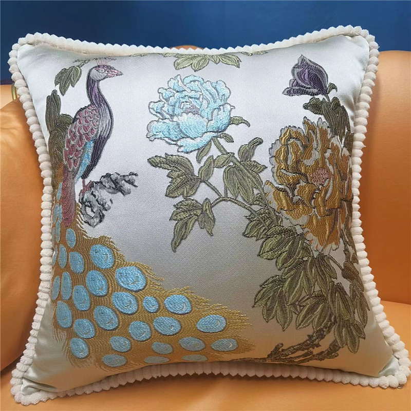 Floral Pattern Pillowslip Embroidery Pattern Car Interior Ornaments Silk Satin Sofa Couch Cushion Cover for Living Room
