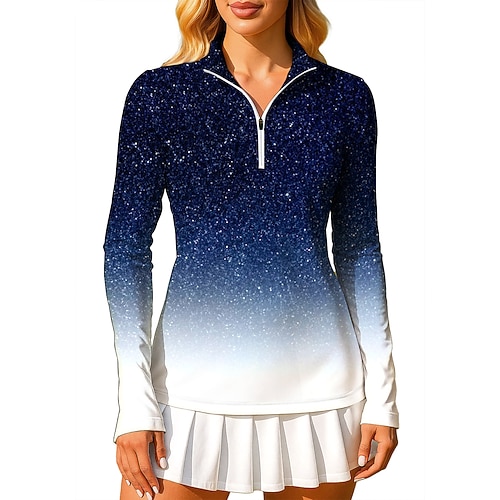 Per donna Sfumatura Felpa Polo Top Maglietta Maglietta sportiva Manica Lunga Stampato Zip a un quarto Pullover UPF50 Resistente ai Raggi UV Protezione UV Elastico Traspirante Pallavolo Tennis Golf