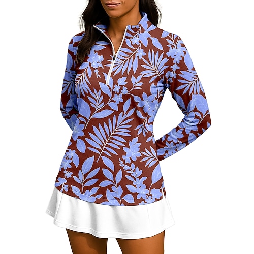Per donna Floreale Top Maglietta Maglietta sportiva Polo da golf Manica Lunga Cerniera Floreale UPF50 Resistente ai Raggi UV Alta elasticità Traspirante Pallavolo Tennis Golf Collo Alto Collo alla