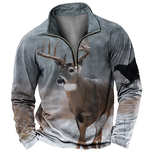 Per uomo Animale Lupo Pile Felpa Moda Casual 3D Collo alla coreana Zip a un quarto All'aperto Vacanza Regalo Abbigliamento casual alla moda Blu Blu 1 Blu 3# Blu 2# Mezza cerniera Autunno Inverno