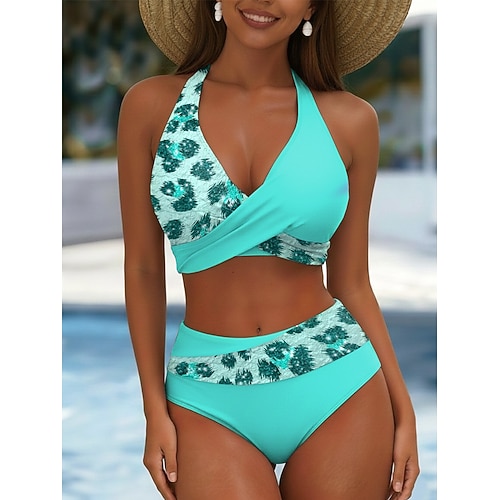 Costume da bagno bikini 2 pezzi da donna leopardato alla moda grafico senza maniche