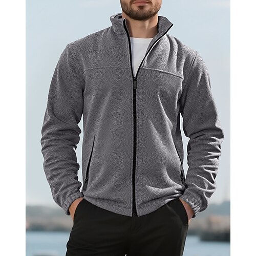 Per uomo Maglia Felpa in pile Felpa con zip intera Aalbicocca Nero Viola Arancione Grigio chiaro Colletto Mao Semplice Con zip Tasca Sport Outdoor Quotidiano Ferie Poliestere Streetwear Essenziale