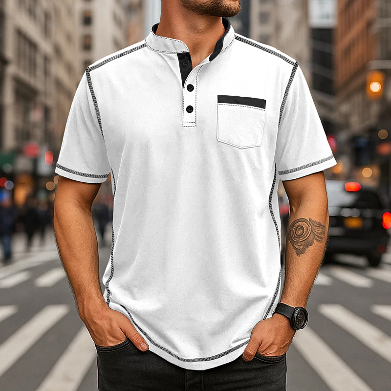 Men's Henley Shirt Tee Henley Top Short Sleeve Solid Color Plain Solid Fashion Designer Casual Color Block Buttons Plain Henley Collar Henley Outdoor Casual Daily Summer All Seasons Black White Navy