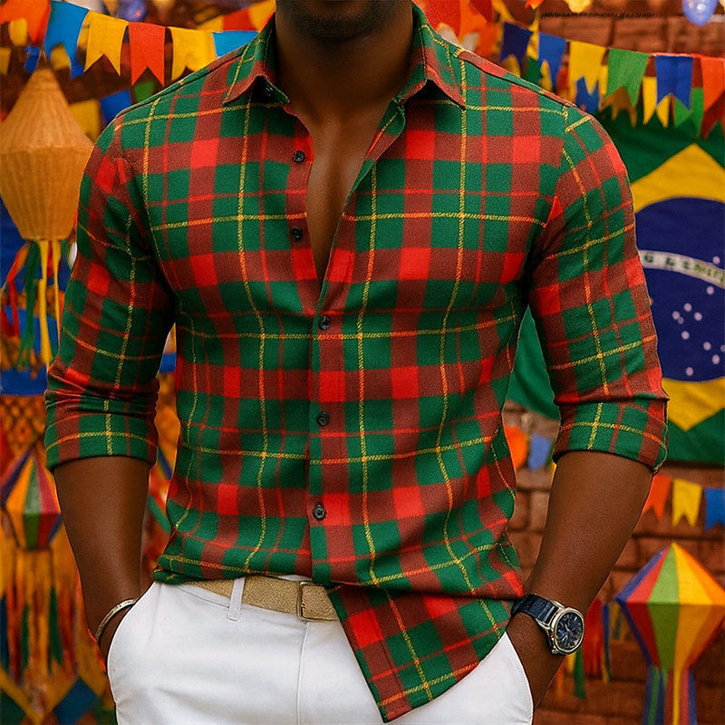 Rio Carnival Shirt for Men – Graphic Red Green Plaid Festival Shirt