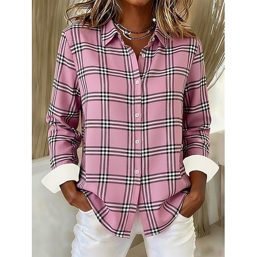 Per donna Maglietta Grafico Plaid Vintage Elegante Classico Manica Lunga Girocollo Top Regolari Quotidiano Stampato Azzurro Primavera Autunno Inverno