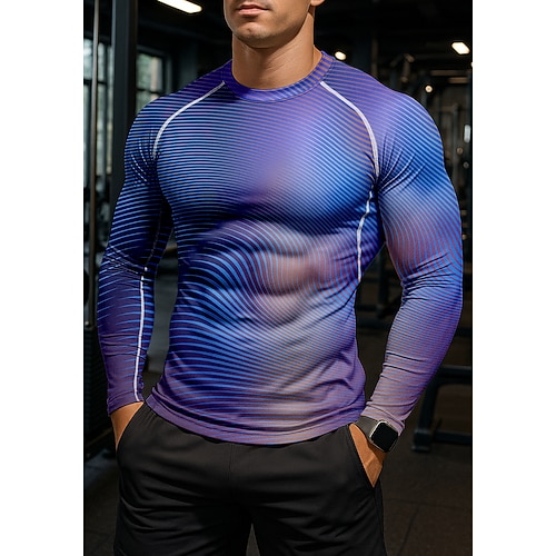 Herren Kompressionsshirt Laufshirt 3D-Druck Nahtlos Langarm Basisschicht Gestreift Schnelltrocknend Kompression Power Flex Feuchtigkeitsableitend Fitnesstraining Aktives Training Übung Sportbekleidung