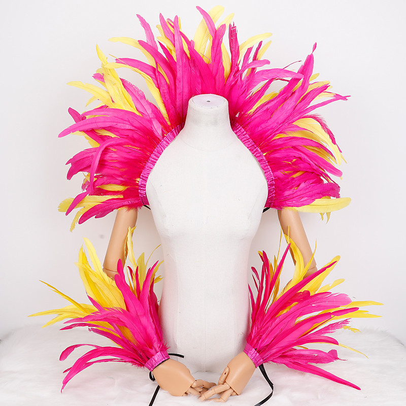 Rio Carnival Samba Accessories Carnival Red and Yellow Feather Costume Set Shoulder Cape Arm Cuffs for Mardi Gras, Dance Party Wear Brazil Festival Performance Costume
