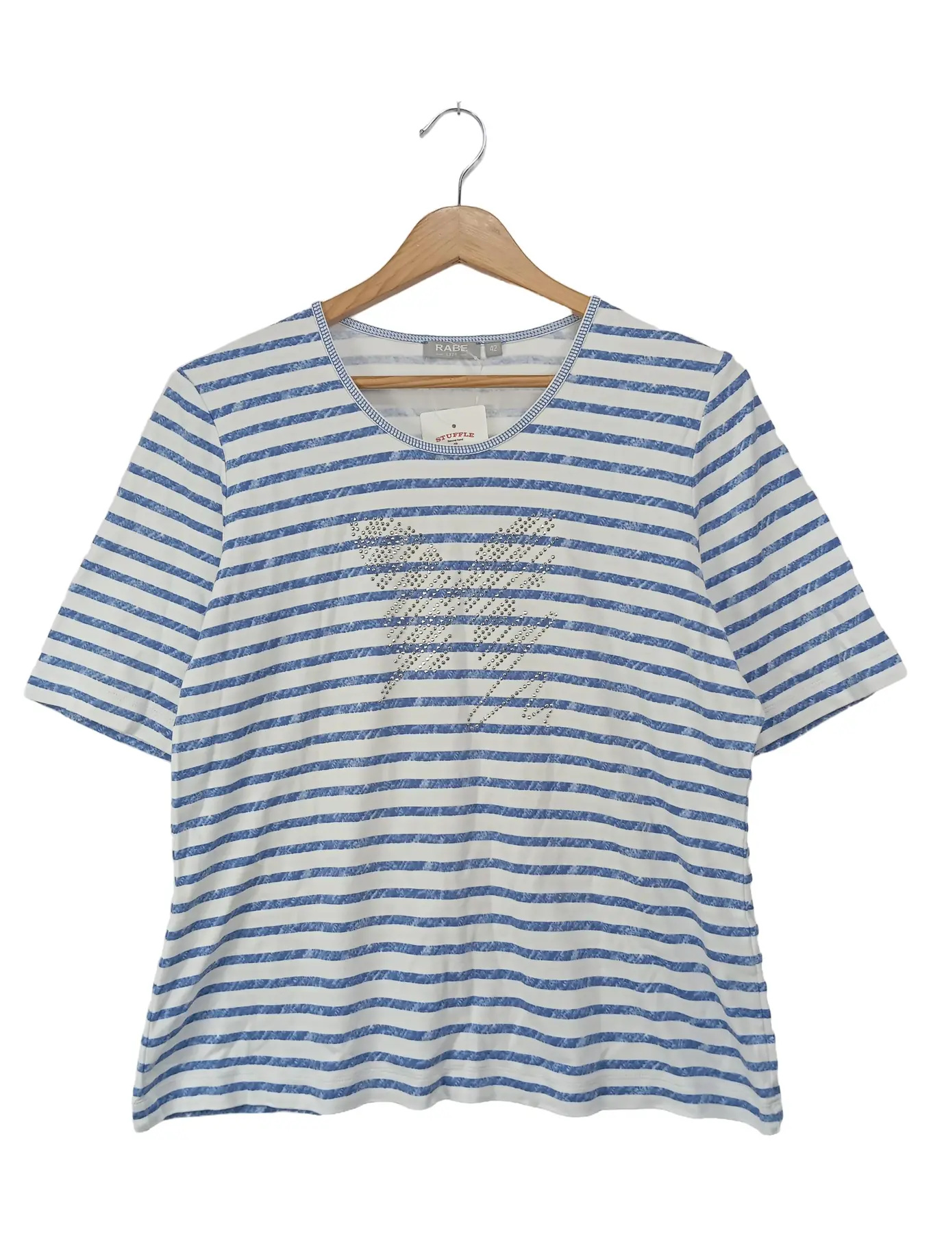 RABE T-Shirt 42 L Blau Weiß Gestreift Strasssteine
