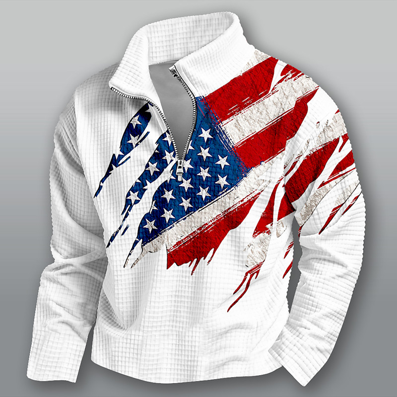 US America 250 Year Anniversary Men's American US Flag Waffle Sweatshirt Fashion Daily Classic Casual Stand Collar Quarter Zip Outdoor Home Office Work Black White Blue Zip Up Fall Winter Designer S