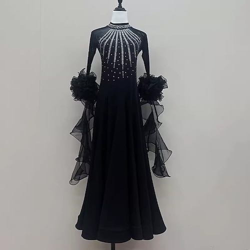Balli da Sala Vestito Strass Giunzione Per donna Performance Allenamento Manica Lunga Spandex Rete