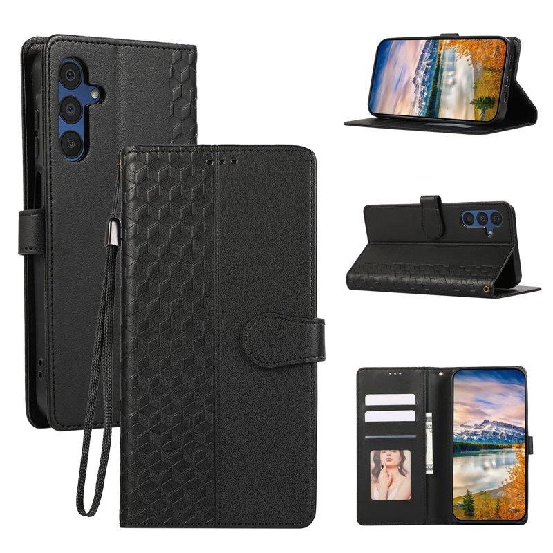 Plånboksfodral för Samsung Galaxy S26 Plus 3D Rombmönster - Svart