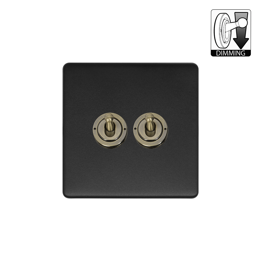 Soho Lighting Lighting Matt Black & Antique Brass 2 Gang Dimming Toggle Switch