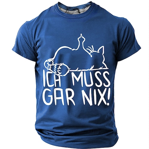 Männer Lustiges Grafik T-Shirt mit Aufmüpfiger Katze Ich Muss Gar Nix! Deutscher Slogan - Lebensstil Kurzarm Tee