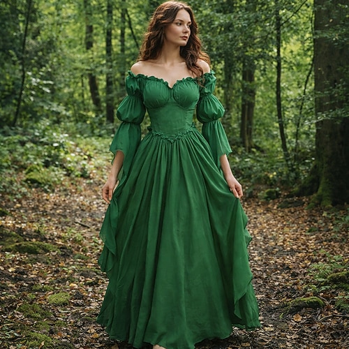 Retrò Vintage Medievale Rinascimento Lunghezza al pavimento Vestito Elfo Costume Per donna Halloween Carnevale Mascherata Fiera Rinascimentale Festa a tema retrò Adulti Vestito Tutte le stagioni