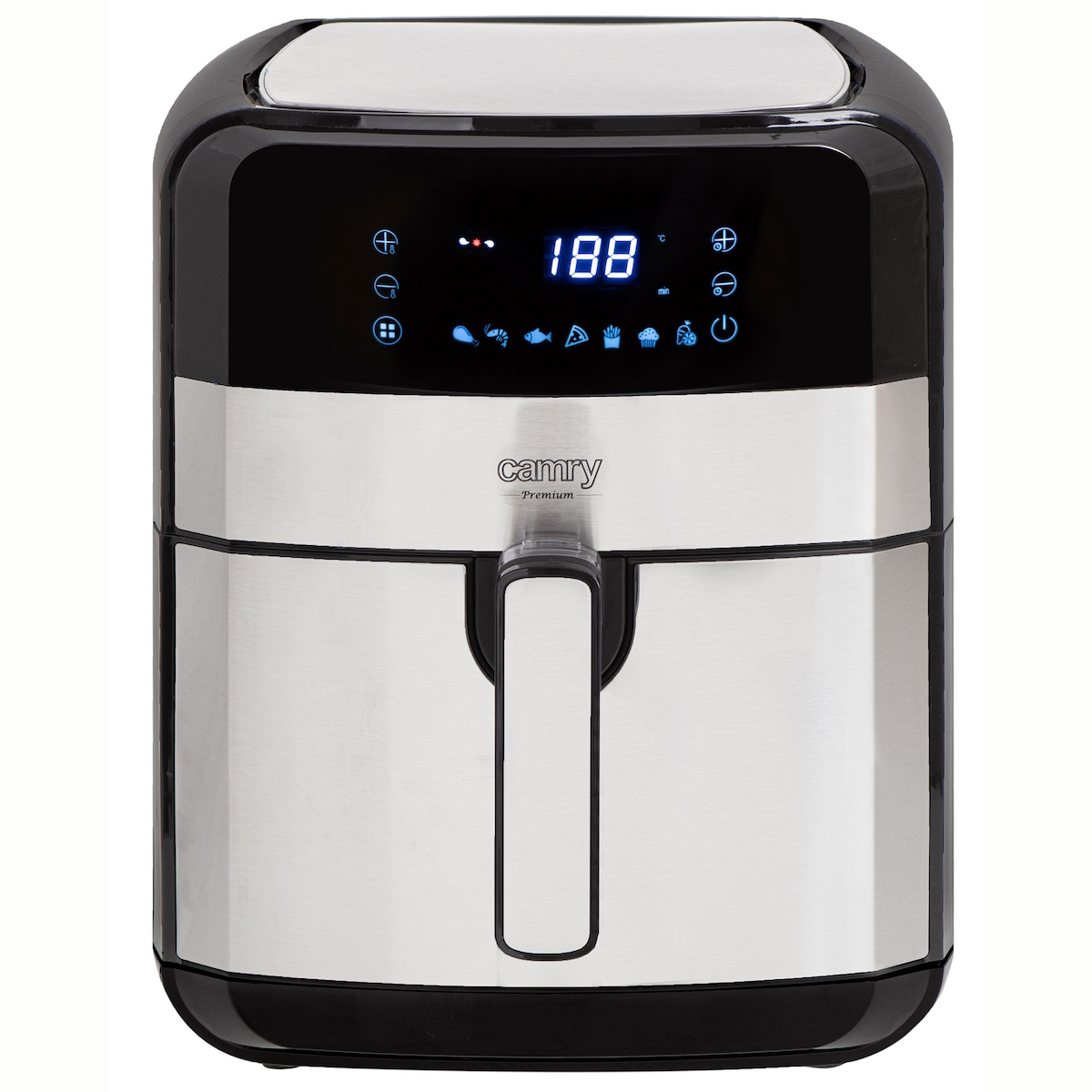 Camry CR6311 Heißluftfritteuse 5 L Ölfrei 8 Programme Timer, Temperatur 80-200°C Backofen, 2500W, Schwarz/Argento.