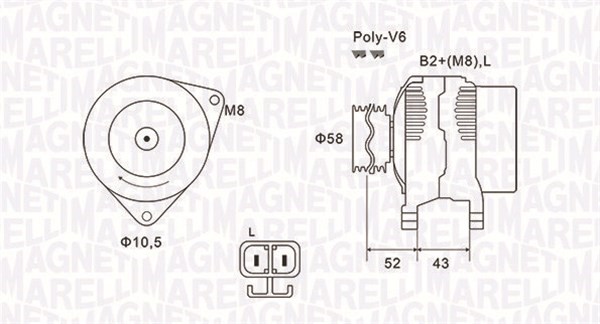 Laturi Magneti marelli 063731903010 - hyundai santa fé i, sonata iv, trajet, kia sportage ii - OE 3730037800