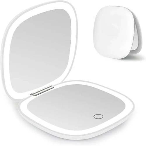 Specchio da viaggio per il trucco con luce a LED, ingranditore 5x 10x, compatto, con ricarica USB, pieghevole, touch screen, luminosità regolabile, mini specchio portatile per viaggi e borsetta