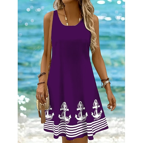 Per donna Mini Abito Vestito Estivo Abito a trapezio Abito a spalle scoperte Vacanza Casual Boho Ferie Spiaggia Vestibilità regolare Grafico Geometrico A righe Senza Maniche Girocollo Scollo Tondo