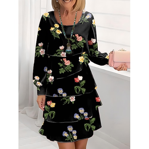 Per donna Abito al ginocchio Vestito Casual Vestito in Chiffon Abito a Tubino Abito a strati Elegante Vacanza Festa Vestibilità regolare Floreale Manica Lunga Girocollo Nero Bianco Blu Verde Estate