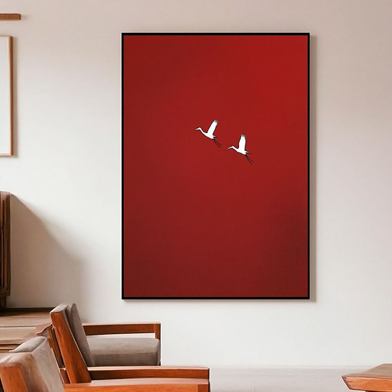 handmade Surreal Crimson Sky painting hand painted Wall Art Poster Minimalist Wall Art Painting Canvas Crimson Wall Art Red Style Painting Flying White Birds Wall Art Premium Poster