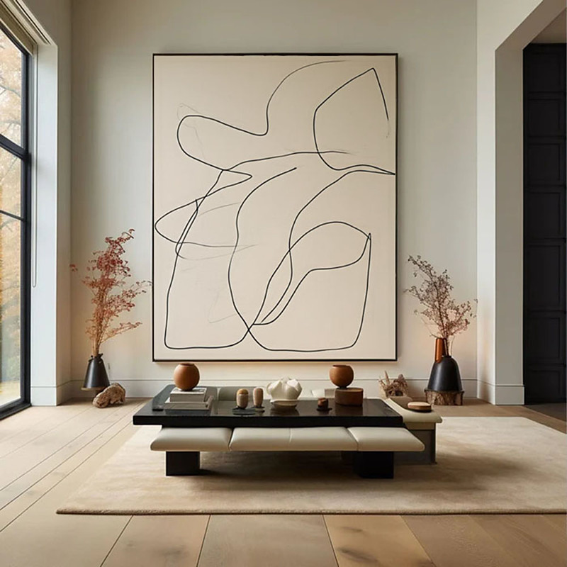 Minimalist Modern Shapes Painting On Canvas Large Neutral Tones For Wall Decor Fancy Boho Wall Deor White Black Yellow Wabi-Sabi Wall Art