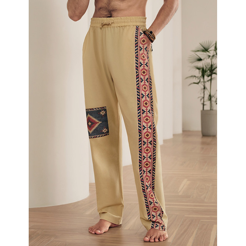 Men's Ethnic Linen Pants Summer Pants Beach Pants Mid Waist Ethnic Style Retro Vintage Casual Daily Holiday Drawstring Elastic Waist 3D Print Spring Summer 3D Print Black Green Khaki