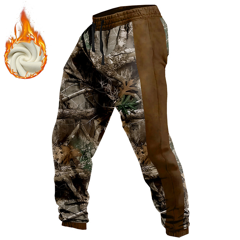 Men's Camouflage Hunting Fleece Sweatpants Drawstring Elastic Waist Casual Vintage Retro Outdoor Streetwear with Pockets Warm Fleece Lined Winter 3D Print Blue Green khaki