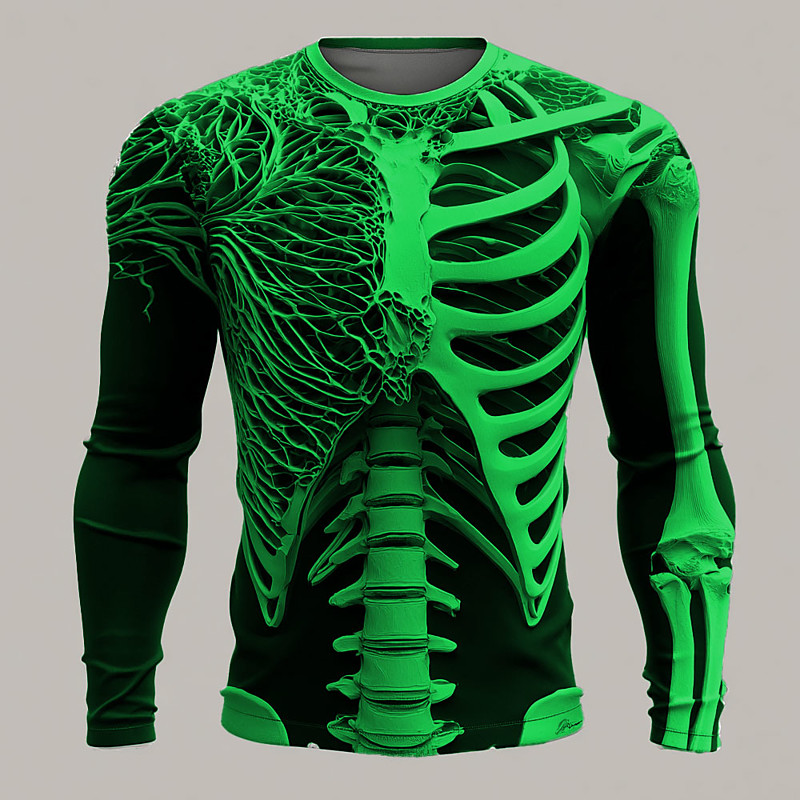 Halloween Men's 3D Skeleton T Shirt Long Sleeve T shirt 3D Print Crew Neck Shirt Fashion Exaggerated Street Casual Daily Blue Orange Green Summer Spring Fall Clothing Apparel S M L XL XXL XXXL