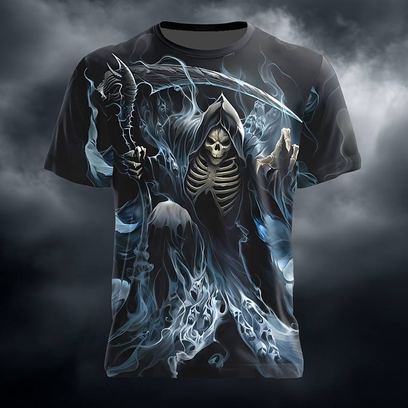 Halloween Men's Grim Reaper 3D Reaper T Shirt Short Sleeve T shirt 3D Print Crew Neck Shirt Exaggerated Designer Horror Party Street Holiday Blue Green Summer Spring All Seasons Clothing Apparel S M