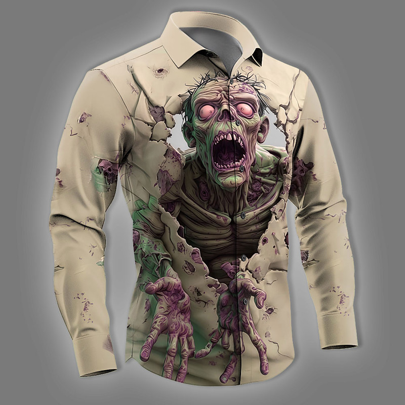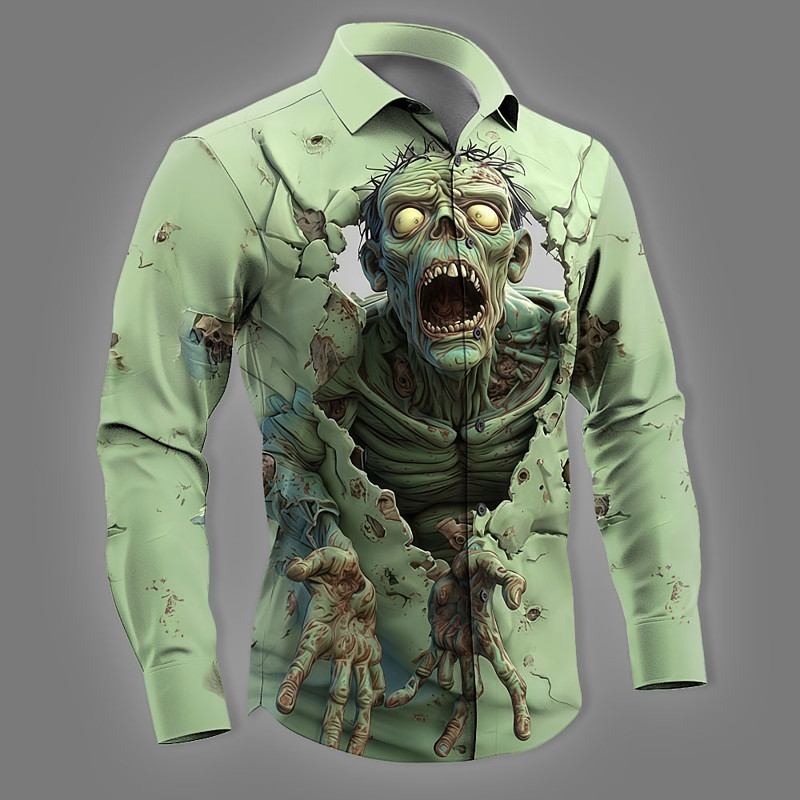 Halloween Men's Zombies Skeleton Horror Shirt Button Up Shirt Long Sleeve Dark Gothic Style Holiday Streetwear Spring Fall Turndown 3D Print Collared Shirts Blue Green Khaki