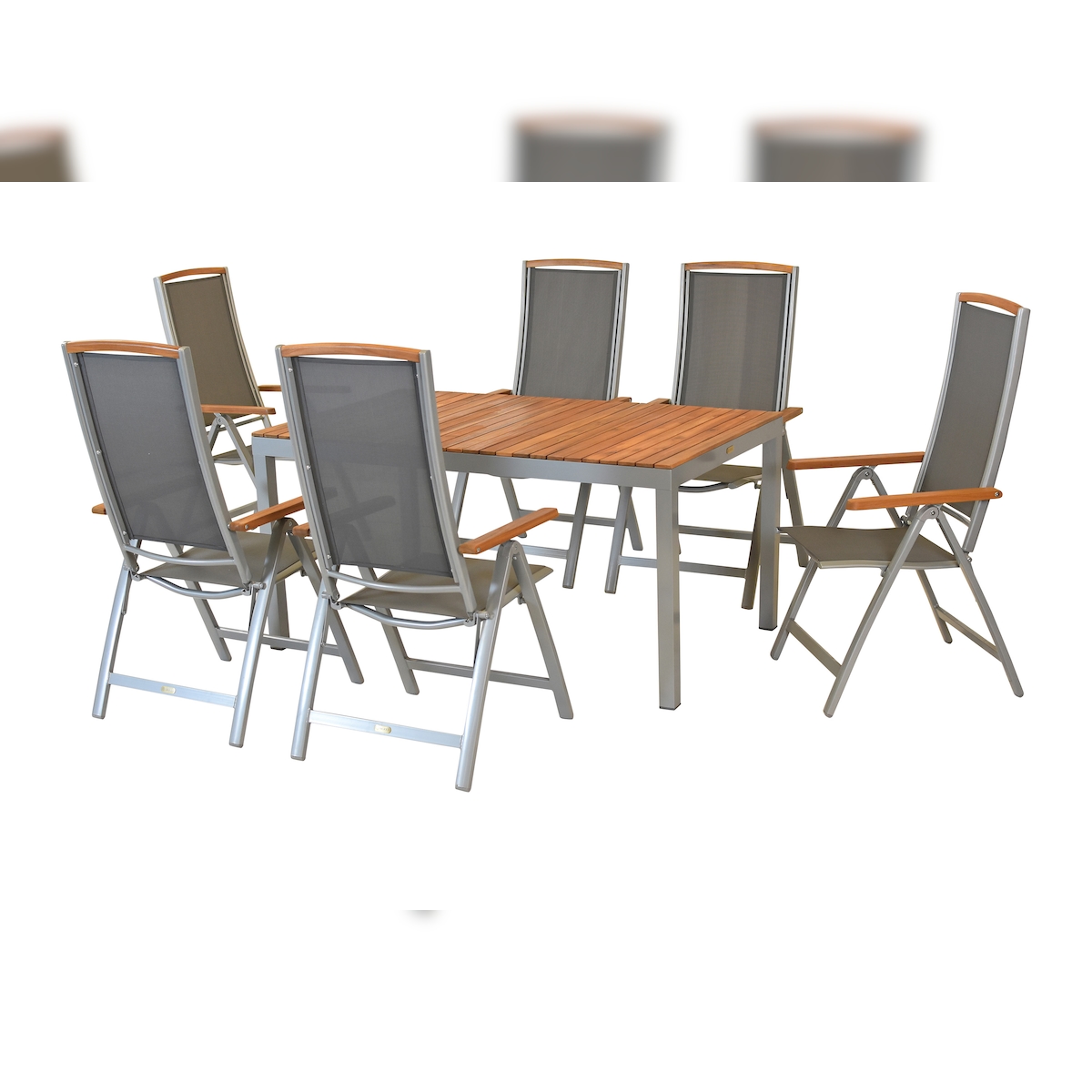Merxx Siena Set 7tlg., 6 Klappsessel, Tisch 150 x 90 cm, Aluminium/Akazie/Textil