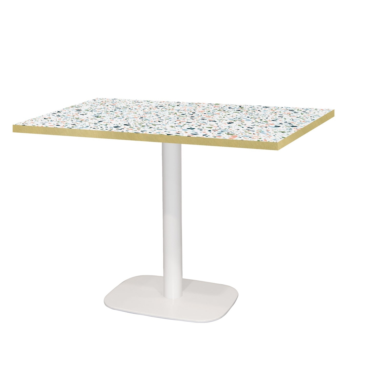 RestooTab - Tisch Round weiß 120x70 Dekor Terrazzo spectra chip Kanten messingfarben
