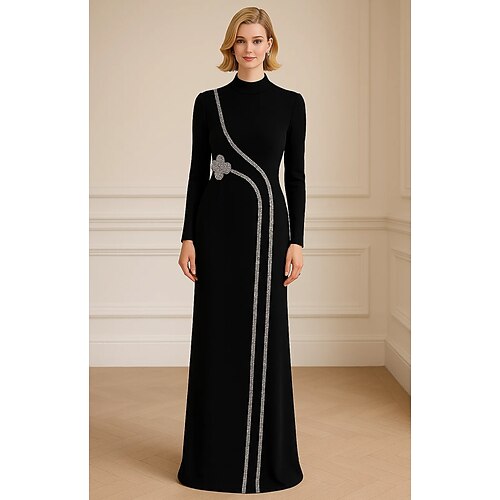 Tubino Colonna Lunghezza al pavimento Abiti da Ballo Abito da Sera Da principessa Abito formale Elegante Manica Lunga Collo Alto Balli di fine anno Festa serale Con Paillettes con Cristalli