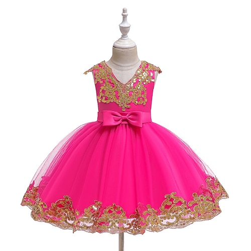 Abito da damigella d'onore bambina Ragazze Abito formale Abiti da sposa Feste Matrimonio Formale Moda Lolita Principessa Paillettes Patchwork Floreale Senza Maniche A V Blu Nero Dai 4 anni in su