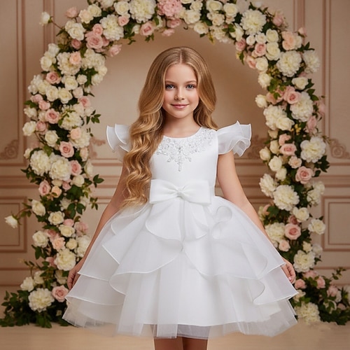 Abito da damigella d'onore bambina Ragazze Abito formale Abiti da sposa Feste Matrimonio Formale Moda Adorabile Principessa Abito per la Prima Comunione Patchwork Rete Tinta unica Maniche Corte