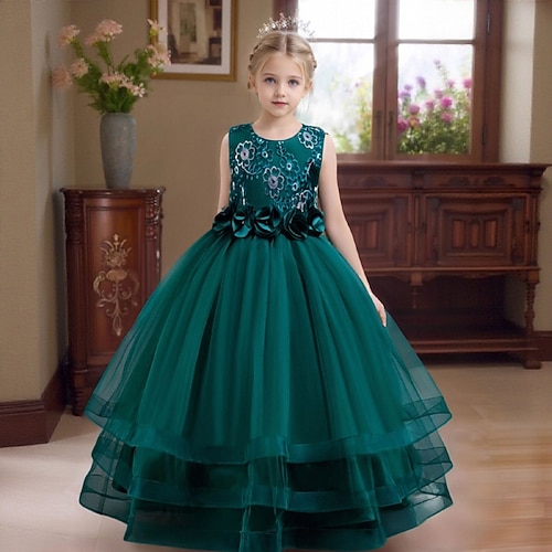 Abito da damigella d'onore bambina Ragazze Abito formale Abiti da sposa Feste Matrimonio Formale Moda Formale Bello Rete Floreale Senza Maniche Girocollo Blu Rosso bordeaux Dai 4 anni in su